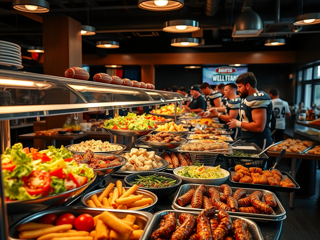 It seems that any restaurant which allows patrons to consume as much food as possible, without asking for more money, is either a charity or will go bankrupt. The example of a hungry football team may come to mind. The fact that chains of restaurants have used this business model for decades suggests that it survives the market test. In Hong Kong, for example, many upscale hotels https://www.peninsula.com/en/hong-kong/hotel-fine-dining/the-verandah-buffet use this business model for some of their restaurants.